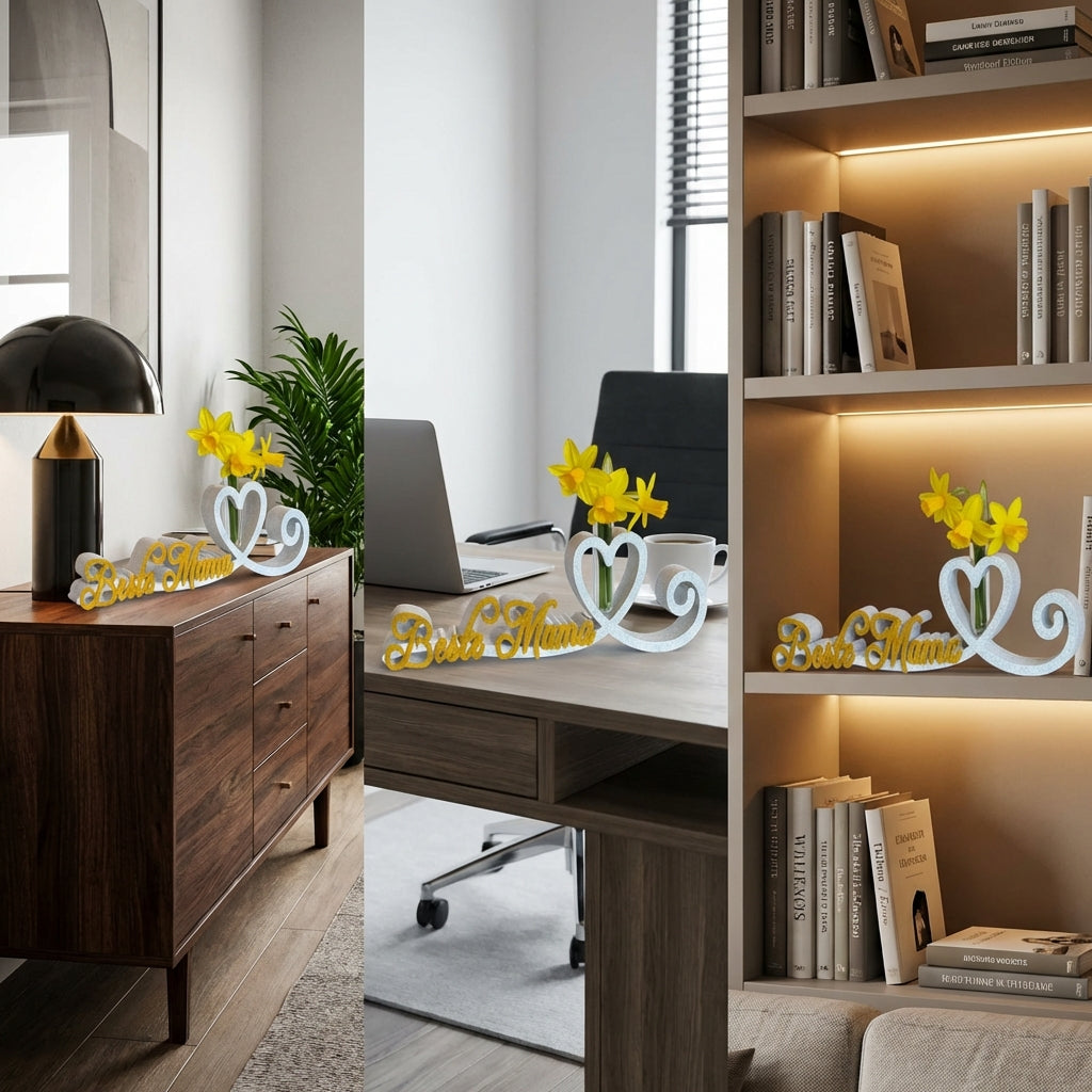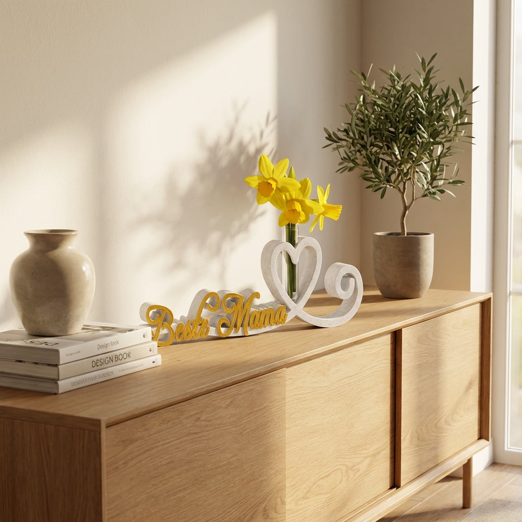 Diese 3D-gedruckte Herzlinie-Deko besteht aus hochwertigem PLA-Material in edler Marmor-Optik und wurde als besonderes Muttertags-Geschenk entwickelt. Das filigrane Herzlinien-Design symbolisiert die Verbindung zwischen Mutter und Kind und eignet sich perfekt als Wanddeko, Regal-Hingucker oder Schreibtisch-Accessoire. Die hochwertige Verarbeitung macht jedes Stück zu einem einzigartigen Geschenk.