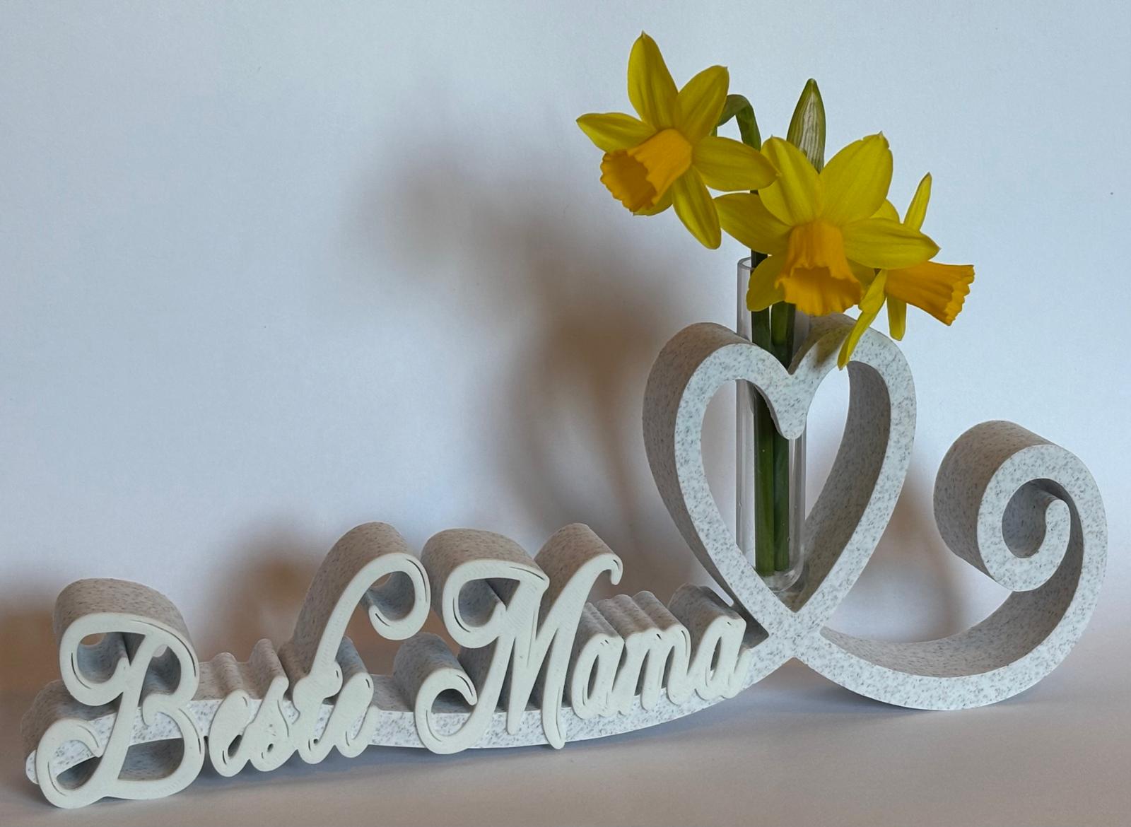 Der Schriftzug "Beste Mama" wird aus hochwertigem PLA im 3D‑Druck gefertigt. PLA ist ein biobasierter, nachhaltiger Werkstoff auf Basis nachwachsender Rohstoffe (z. B. Maisstärke).