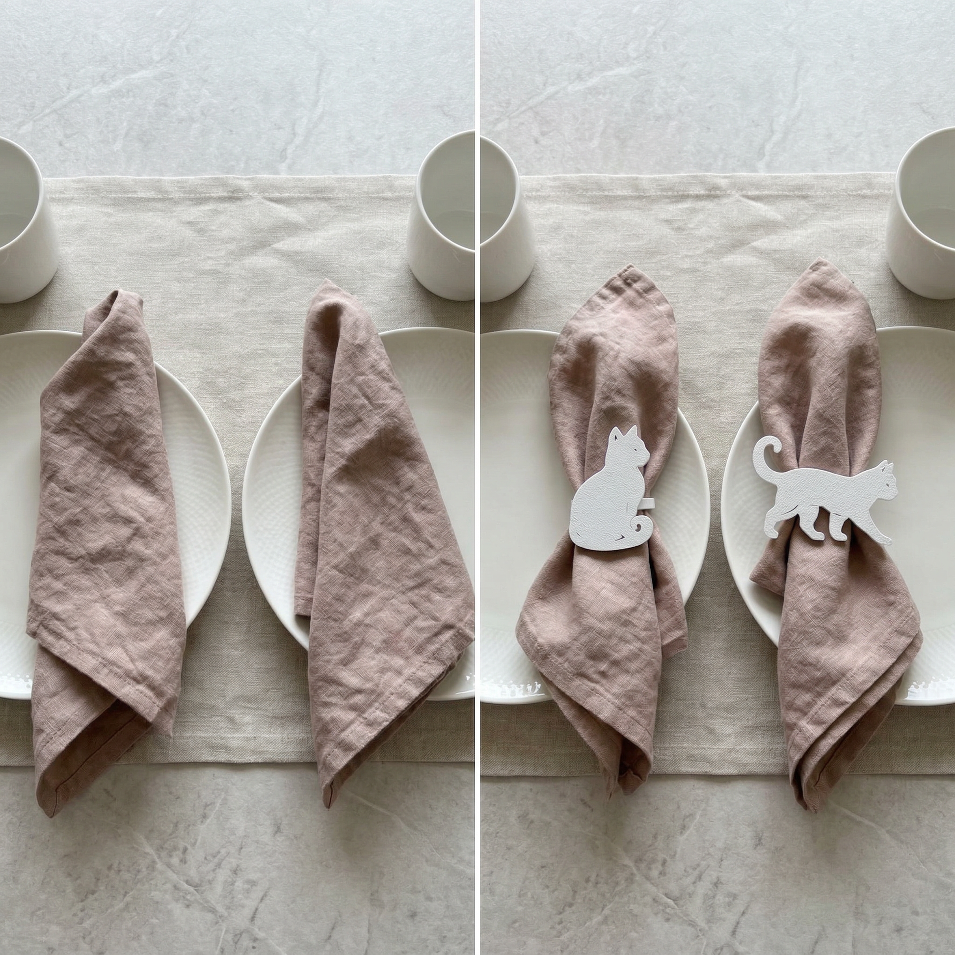 💡 Tipp: Kombiniere die Katzen‑Serviettenringe mit Servietten in dezenten Naturtönen oder mit Pfoten‑Motiv, um ein stimmiges Katzen‑Thema auf Deinem Tisch zu gestalten.